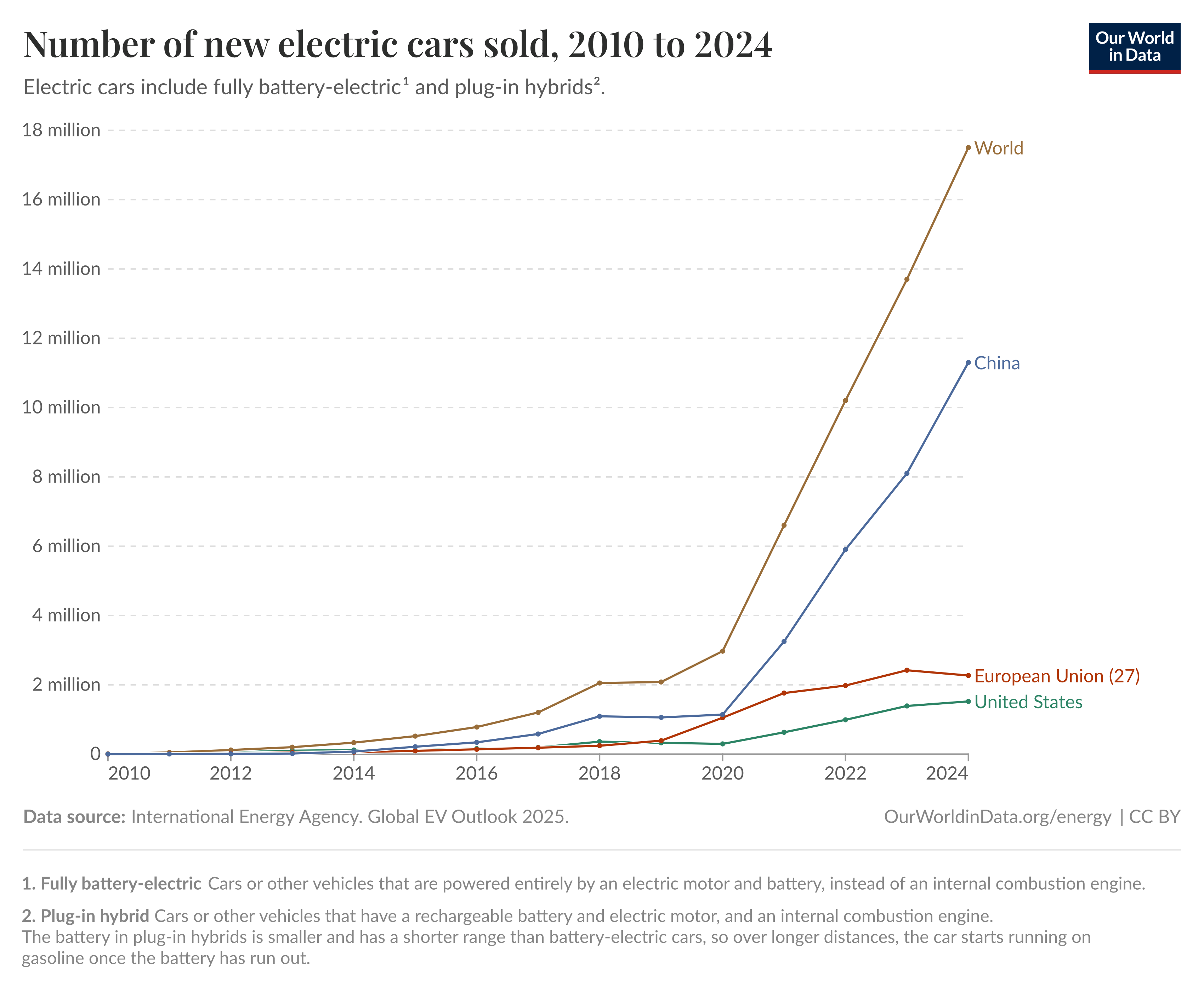 But in fact, the 3.6 million unit increase in EV sales in 2025 is larger than the 3.5 million unit increase in 2024, which is larger again than the 3.2 million increase in 2023.